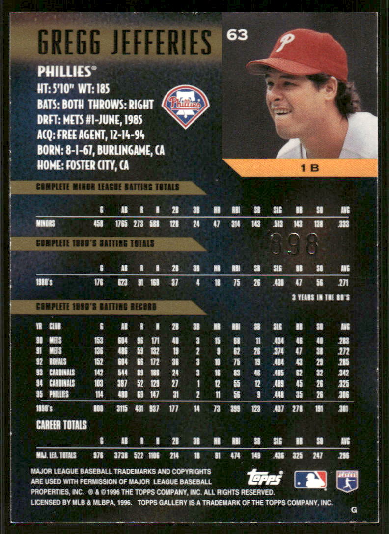 1996 Topps Gallery Players Private Issue #63 Gregg Jefferies /999