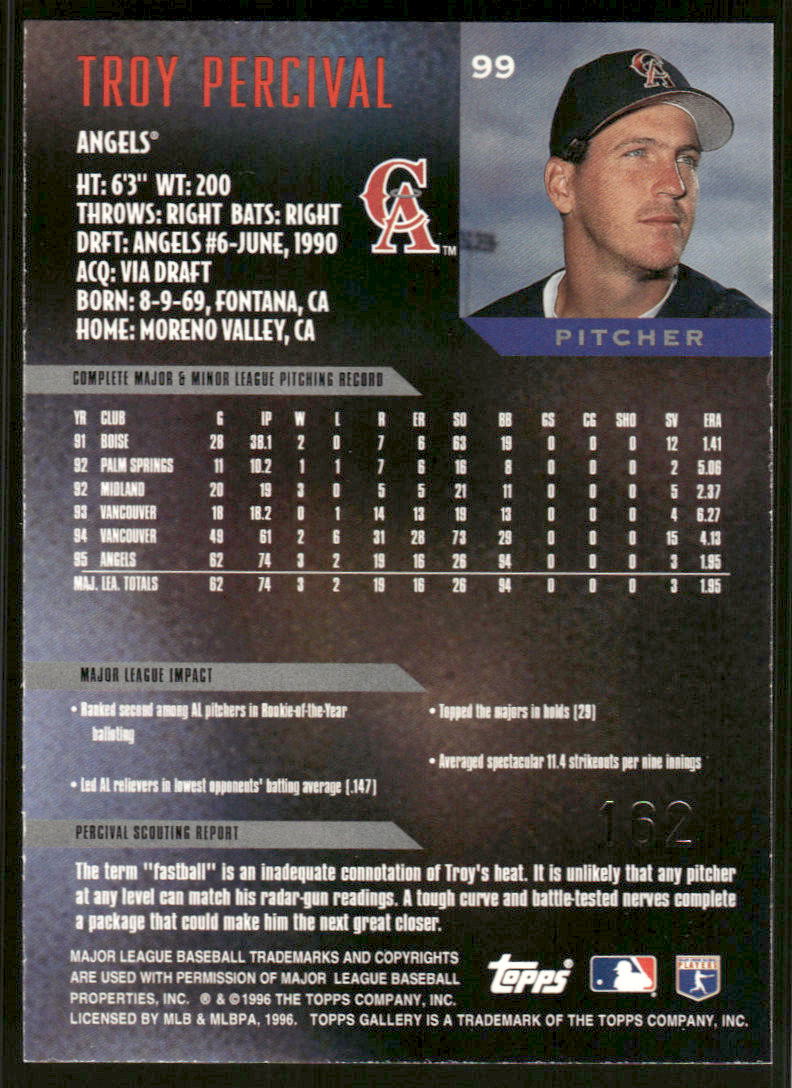 1996 Topps Gallery Players Private Issue #99 Troy Percival /999